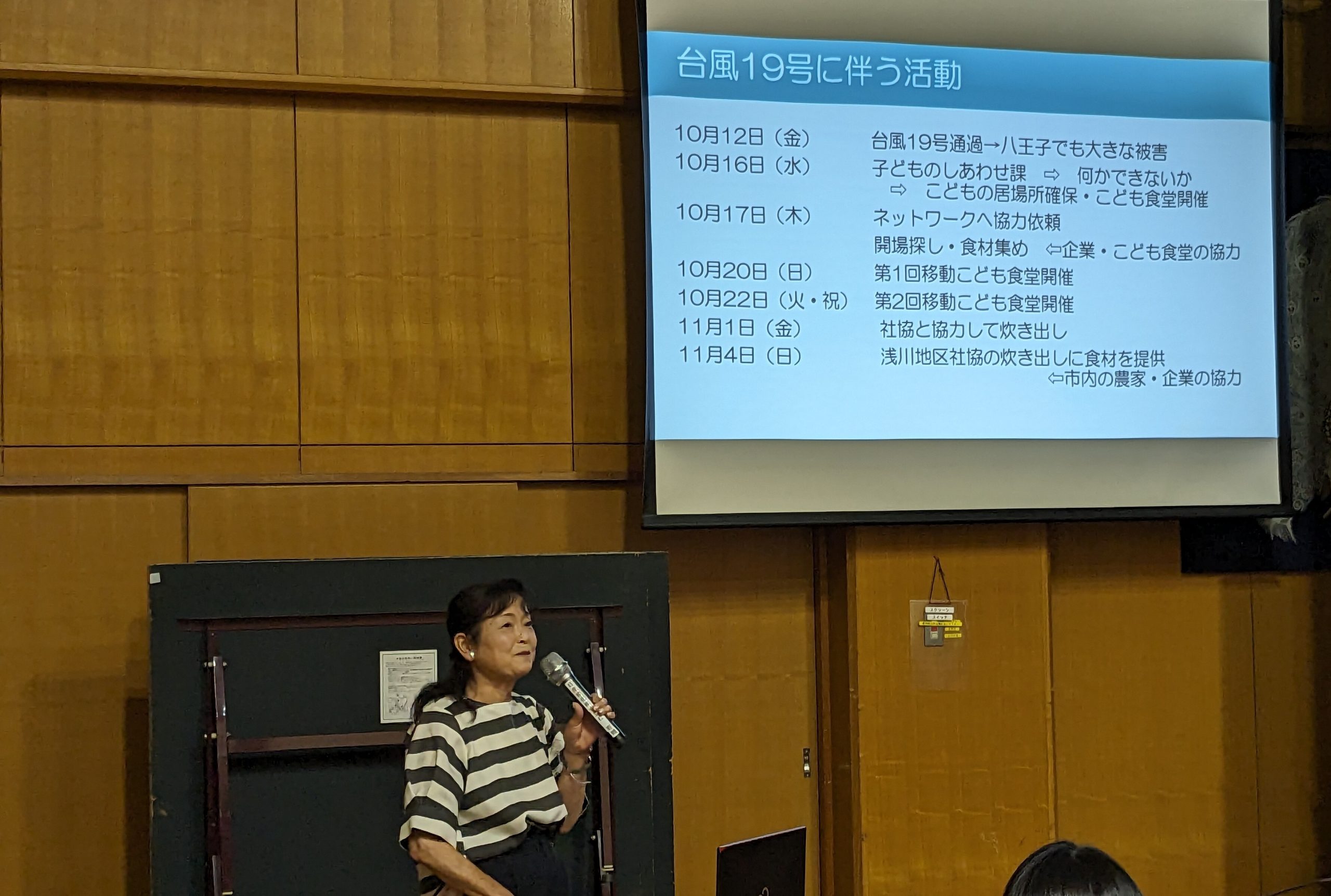 被害が顕著であった浅川地区で災害ボランティアの方達、また、そこで暮らす子ども達へ何か出来ることは無いかと活動された内容をお話しされました。