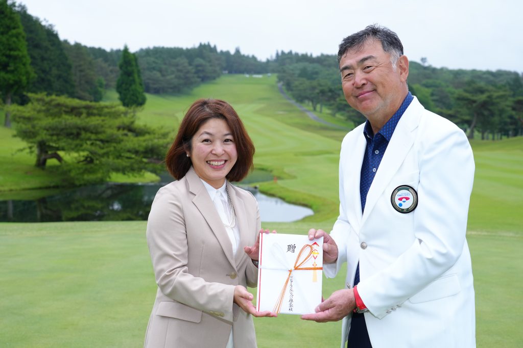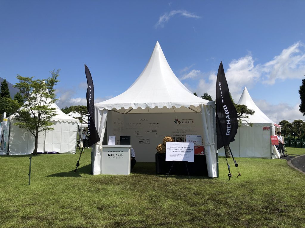 また大会開催中、会場内のリシャールミルジャパン様のチャリティブースでも当法人に対する募金活動が実施され、リシャール・ミルファミリーでもあります女子プロゴルファーの成田美寿々選手自らが募金の呼びかけをしていただき、たくさんの寄付金が集まりました。