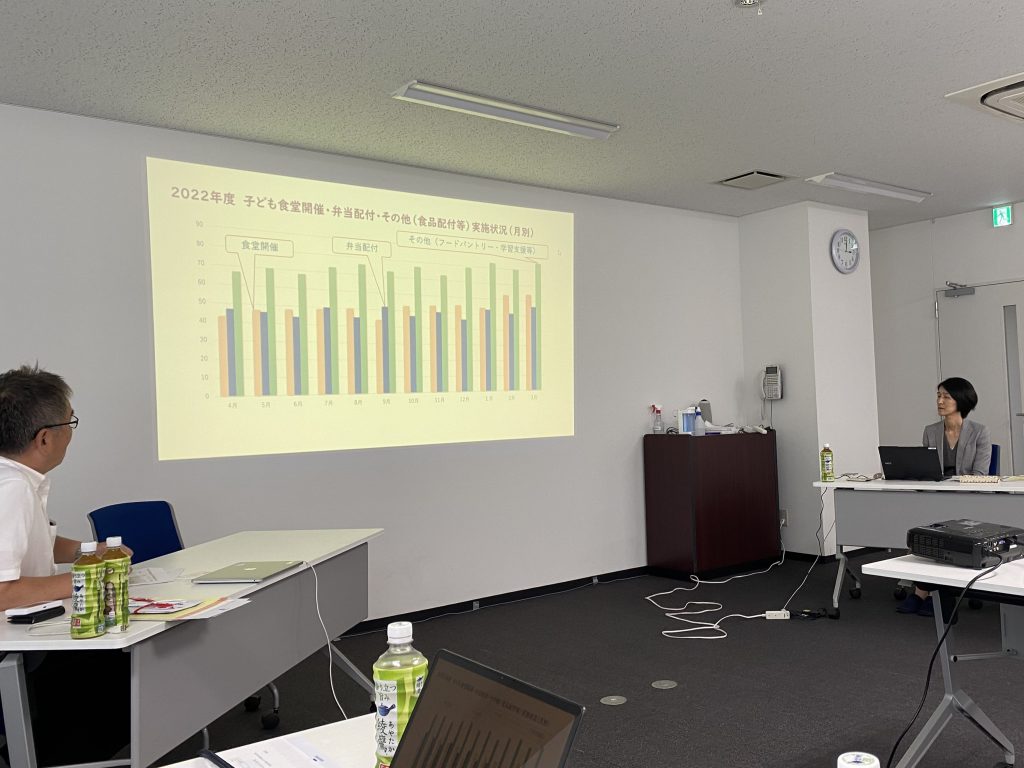 その後、高速様と3つの地域ネットワーク団体、むすびえとで行った交流会では、「寄付食品の保管や配送について」「こども食堂とフードバンクの違いと連携状況」「コロナ禍にお弁当配布等を行っていた食堂での会食再開」「高齢者施設でのこども食堂」など様々なテーマでの意見交換が行われました。