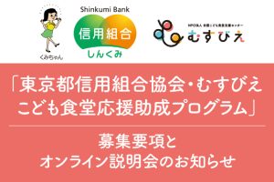 「東京都信用組合協会・むすびえ こども食堂応援助成プログラム」募集要項とオンライン説明会のお知らせ
