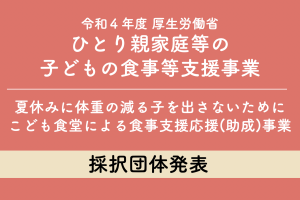 【ご案内】厚生労働省「ひとり親家庭等の子どもの食事等支援事業」採択団体発表