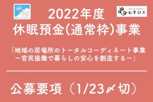 【お知らせ】2022年度 休眠預金(通常枠)事業「地域の居場所のトータルコーディネート事業ー官民協働で暮らしの安心を創造するー」公募要項(締切1/23)