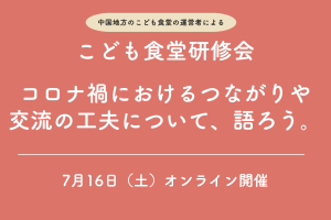 【ご案内】こども食堂運営者による研修会「コロナ禍におけるつながりや 交流の工夫について、語ろう。」