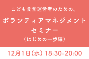 【お知らせ】こども食堂運営者のための、ボランティアマネジメントセミナー(はじめの一歩編)
