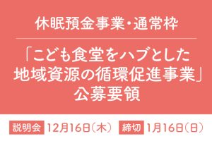 【お知らせ】2021年度休眠預金事業通常枠「こども食堂をハブとした地域資源の循環促進事業」公募要項(締切1/16)
