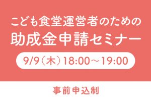 【お知らせ】こども食堂運営者のための、助成金申請セミナー(入門編)
