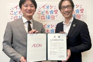 2020年12月にスタートした「イオンこども食堂応援団」は、イオンとむすびえが連携し、こども食堂を通じて、子ども・子育て世帯の暮らしを応援するとともに、地域で繋がり合うコミュニティづくりへの貢献を目指すプロジェクトです。