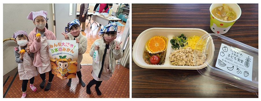 「毎日くだもの200g運動」の一環として、2018年より継続して、日本みかん農協様より全国のこども食堂においしい「温州みかん」をご提供いただいております。旬の食材ということもあり、毎年、この時期だけしか食べることができず、何といっても、果物そのものを多くの子どもたちに提供できることは、非常に貴重なご支援です。みかんと一緒に食育を普及するための冊子を、各こども食堂で配布していただきました。